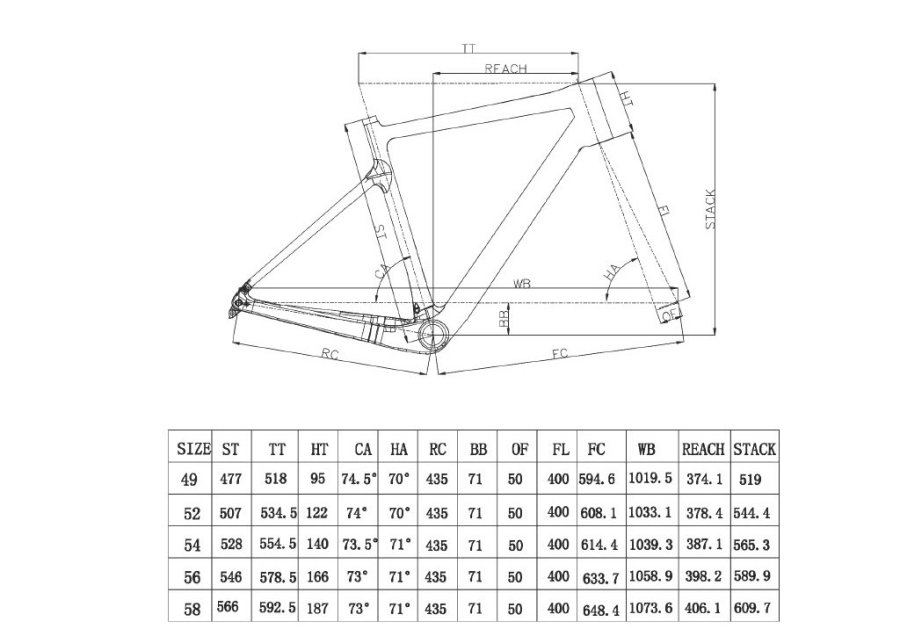49cm - 52cm - 54cm - 56cm - 58cm |